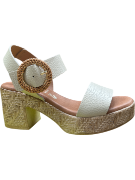 Laissez-vous séduire par la sandale MARION, une création qui allie avec brio l'esprit vintage et le confort moderne. Ce modèle se distingue par sa boucle ronde travaillée à l'aspect rotin et sa semelle texturée, offrant une allure solaire et artisanale idéale pour sublimer vos tenues d'été.