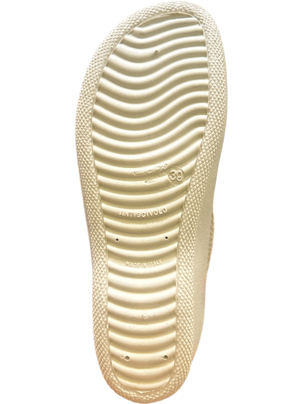 La semelle de la Mule Chaloche est en polyuréthane, ce qui la rend antidérapante. Vous pourrez ainsi marcher en toute sécurité, même sur les surfaces les plus glissantes.